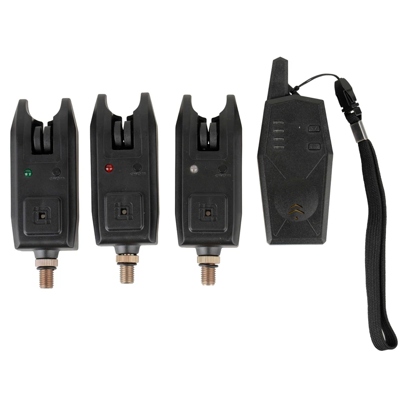 Étanche Prise de haut-parleur pour baisser le volume Haute sensibilité Émetteur sans fil intégré Portée sans fil de 100 m DEL haute visibilité L’alarme fonctionne avec 1 pile 9 V (non incluse) Le récepteur fonctionne avec 3 piles AAA 1,5 V (non fournies) li>Mode silencieux sur le récepteurRon Thompson Gangster Bite-Alarm Set 3+1Alarmes de touche : 3 piècesEnsemble d’alarmes de touche Ron Thompson Gangster 4+1Alarmes de touche : 4 pièces